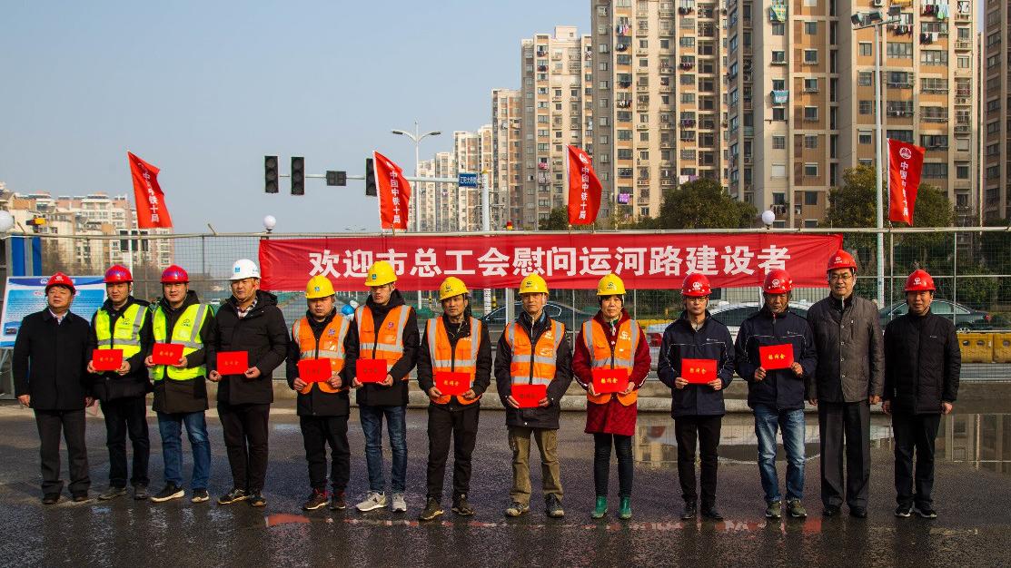 在新春佳節(jié)即將到來之際,1月19日上午,市總工會副主席戚安寶帶隊(duì)來到運(yùn)河路快速化改造工程項(xiàng)目部,親切慰問了一線施工人員,并為他們送上了新春的祝福。城控集團(tuán)副總經(jīng)理季紅軍、工會主席張正斌參加了慰問。