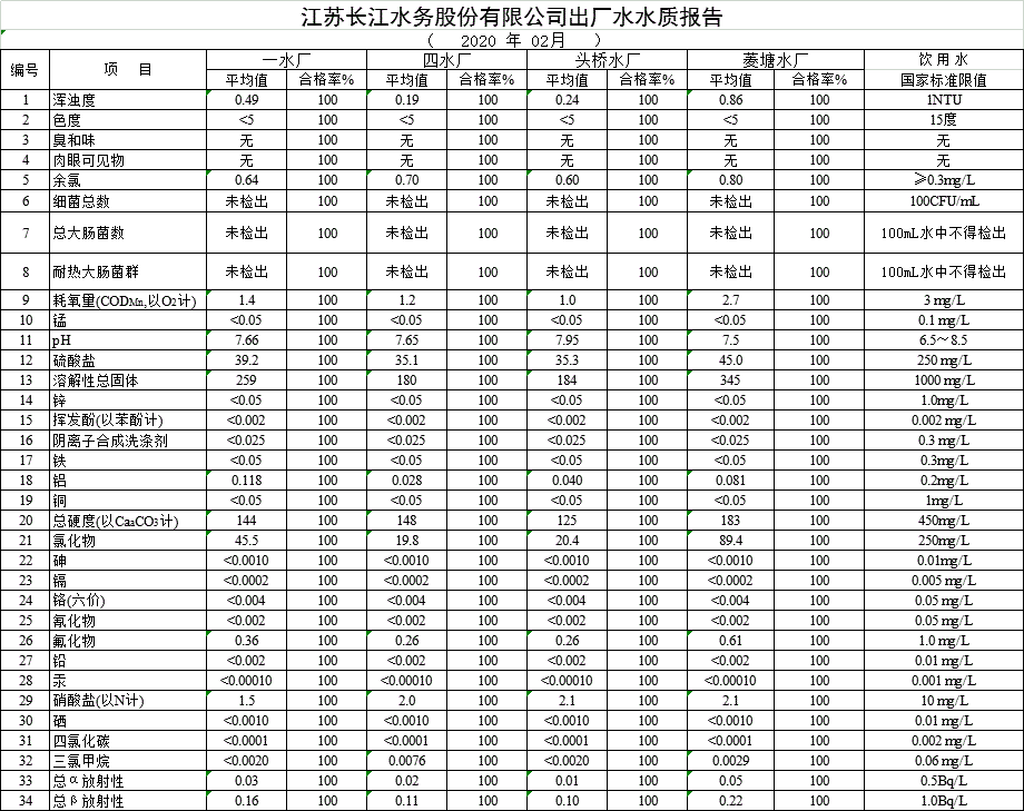 自來水水質報告(2020年2月份)