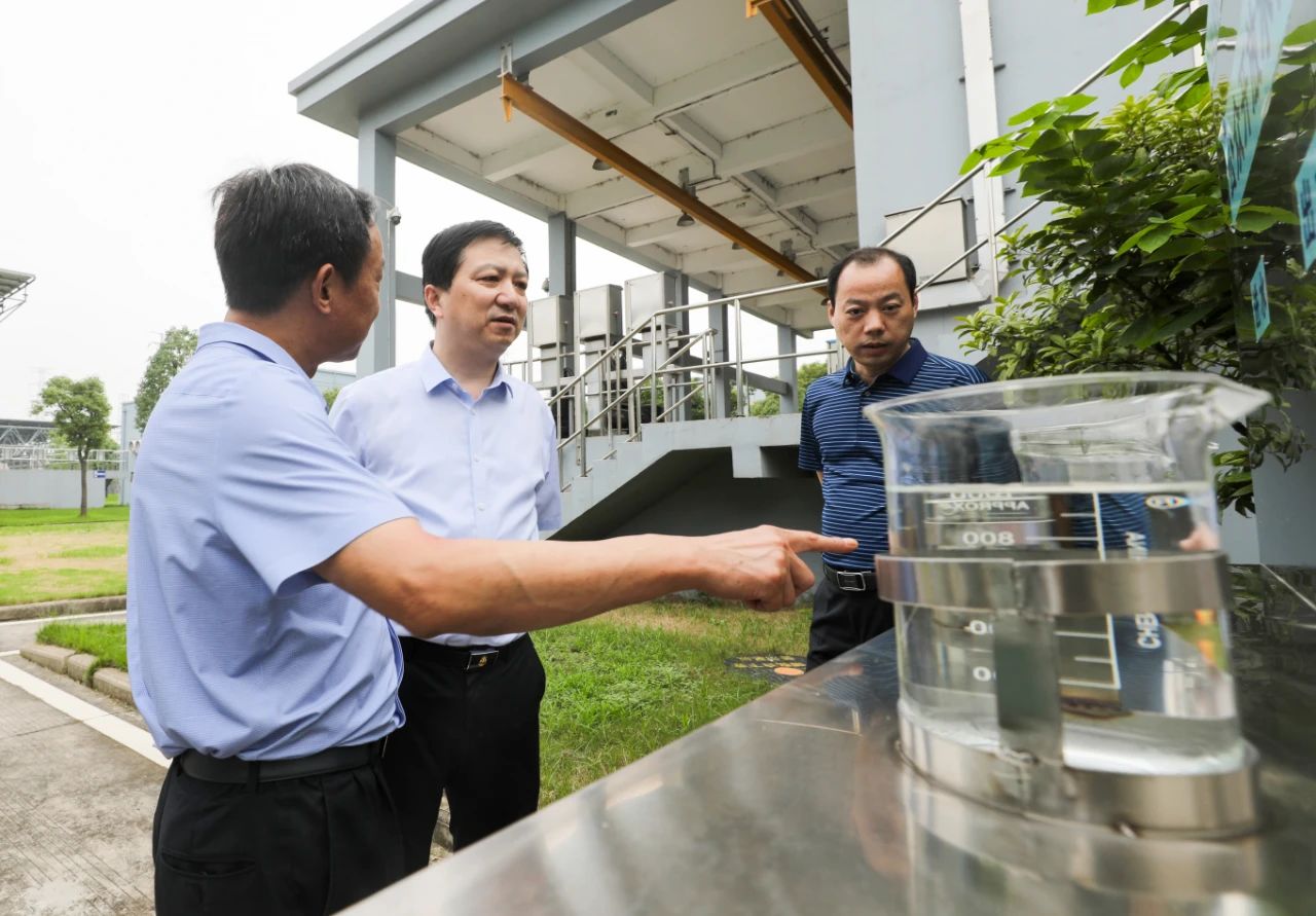 在六圩污水處理廠,夏正東實地察看了出水泵房、光伏電站等生產區域,詳細了解企業項目運營、污水管網現狀、廠區運行調控、綠色循環經濟產業鏈等情況。