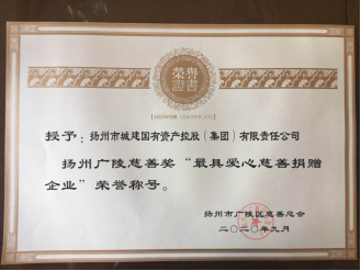 多年來,城控集團始終秉承“與城市共生息”的企業使命,履行國有企業的責任擔當,堅持投身慈善事業,大力弘揚慈善精神,宣傳慈善文化,積極開展慈善捐贈、結對幫扶、關愛婦女兒童、助殘助困等活動,積極向社會傳遞樂善好施、扶貧濟困的美德和愛心奉獻的精神,2019年榮獲“江蘇省慈善之星單位”稱號。