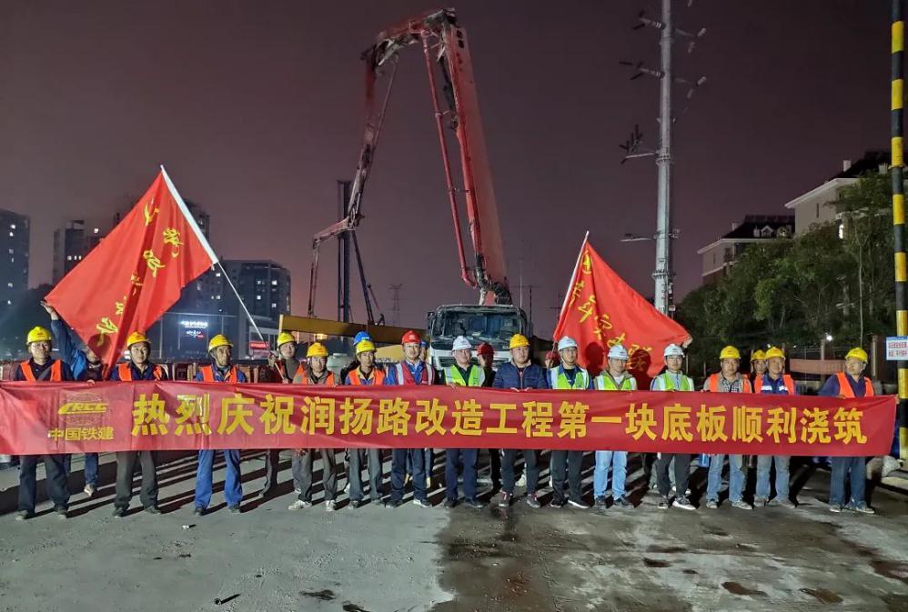 11月3日下午3點,隨著混凝土輸送泵的一聲轟鳴,經過近19個小時的連續作業,潤揚路快速化改造工程(百吉巷-同泰路北)項目三工區首塊底板混凝土順利澆筑,標志著該項目正式進入主體結構施工階段。