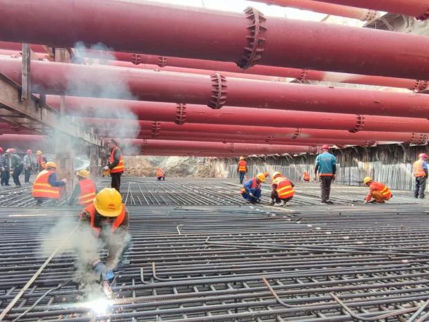 此次澆筑的隧道底板長50米,寬30米,厚1.6米,累計使用鋼筋約280噸、模板約300平方米,共計澆筑混凝土約2500立方米。