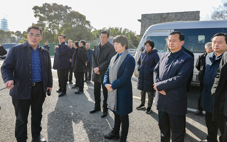 1月13日下午,市長張寶娟一行來到大學路南延三期工程現(xiàn)場,實地調研工程進展情況。副市長何金發(fā),市政府秘書長尤在晶、副秘書長林寶榮和市相關部門負責人陪同調研,城控集團董事長葉善祥、副總經(jīng)理季紅軍參加活動。