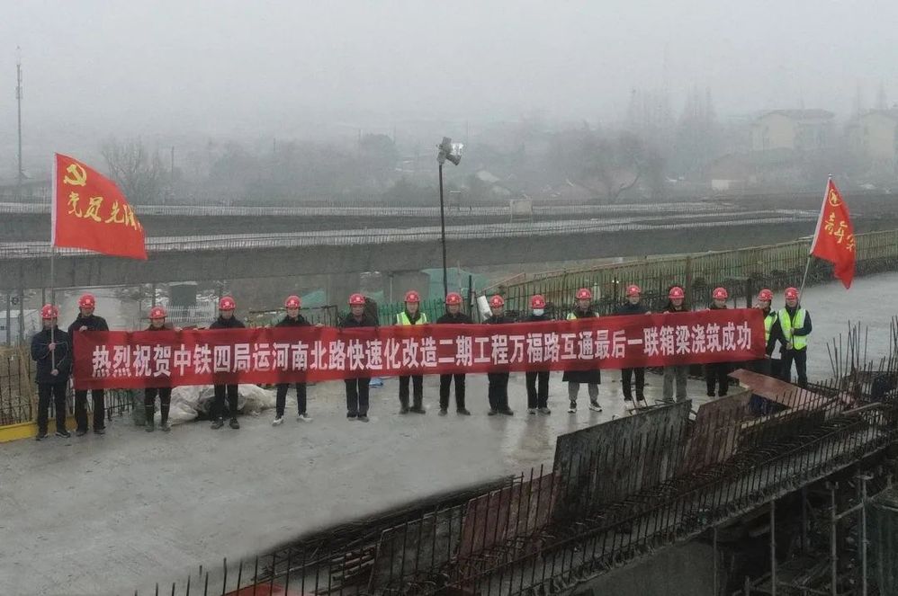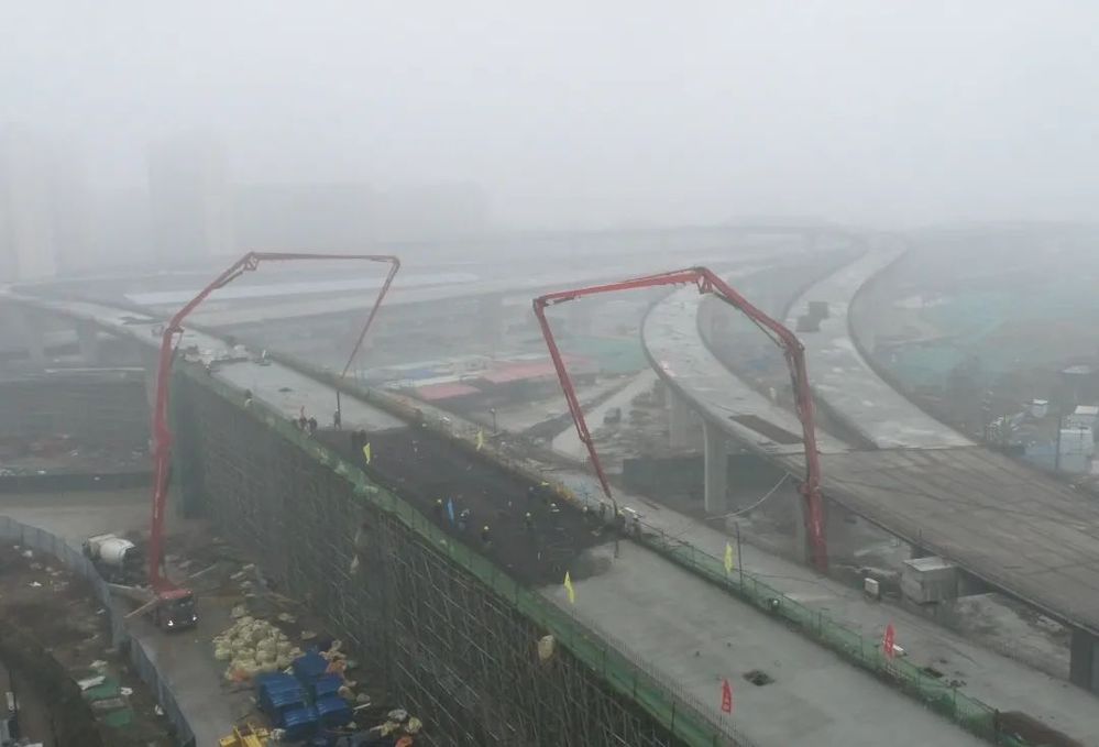 1月26日17:50,經過近6小時連續作業,萬福路互通C匝道第7聯現澆箱梁頂板混凝土順利澆筑完成,標志著運河南北路快速化改造二期工程(萬福西路—物港路北)互通區域現澆箱梁施工圓滿完成收官之戰。