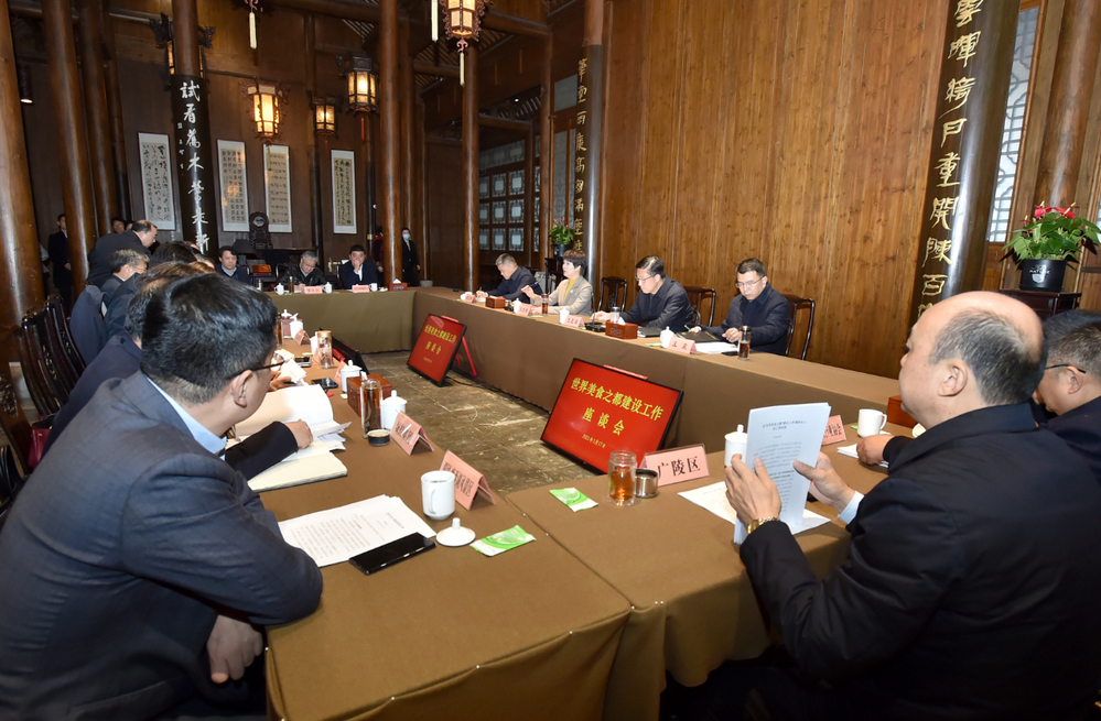 隨后,張寶娟在盧氏古宅慶云堂主持召開世界美食之都建設工作座談會,葉善祥董事長匯報了康山鹽商文化園目前的運營情況,以及城控集團在世界美食之都建設中所做的工作。