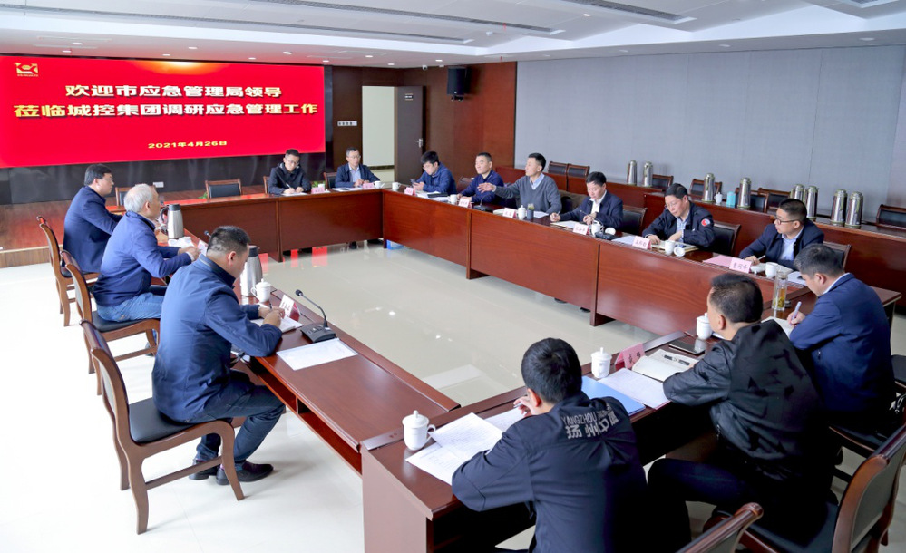 4月26日上午,揚(yáng)州市應(yīng)急管理局二級調(diào)研員李鳳如帶隊到城控集團(tuán)調(diào)研應(yīng)急管理工作。集團(tuán)副董事長戚磊、集團(tuán)企管部、揚(yáng)州中燃、長江水務(wù)、供熱公司、潔源排水、市政管網(wǎng)公司相關(guān)人員參加調(diào)研活動。