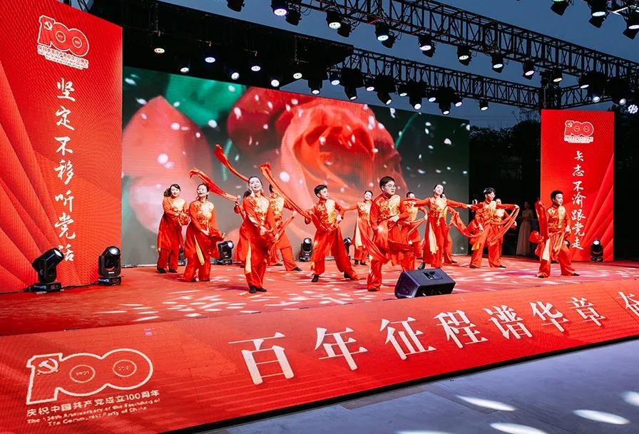 揚州中燃公司選送的舞蹈《歡聚一堂》、歌伴舞《我們都是追夢人》兩個節目,以飽滿的精神、精彩的演出,用歡歌樂舞慶祝黨的百年華誕,謳歌黨的豐功偉績,表達了對黨最深切的熱愛和最真摯的祝福,充分展示了公司干部員工永遠跟黨走、建功新時代的奮進力量,獲得在場領導和群眾一致好評。整場演出在全體人員大合唱《沒有共產黨就沒有新中國》的雄壯歌聲中落下帷幕。