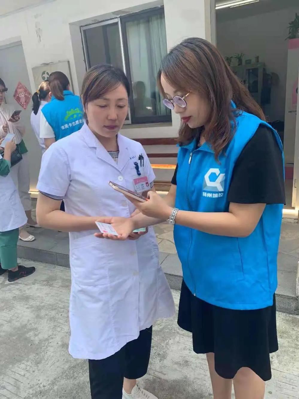 活動現場,市民卡公司黨員志愿者統一穿著藍馬甲,向婦幼保健院的醫患人員宣傳推廣市民卡公司標準卡等卡片的相關功能,現場解答群眾辦卡疑問,并提供現場充值服務。同時,志愿者們還通過發放宣傳資料、現場解答、APP實操指導等多種方式積極解答群眾提出的各項市民卡和“我的揚州”APP使用疑問,受到了在場群眾一致好評。