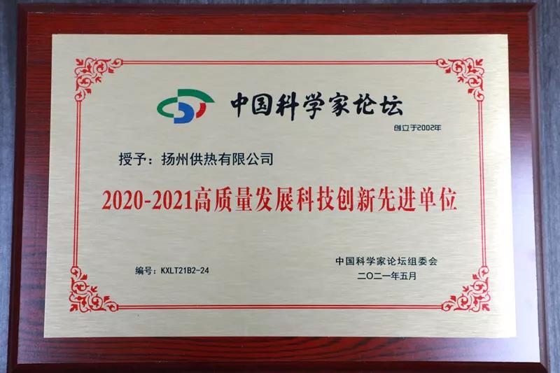 近日,揚州供熱公司榮獲江蘇省燃?xì)鉄崃f(xié)會頒發(fā)的“2020年度抗疫保供和冬季安全保供突出貢獻單位”和中國科學(xué)家論壇組委會頒發(fā)的“2020-2021高質(zhì)量發(fā)展科技創(chuàng)新單位”榮譽稱號 。