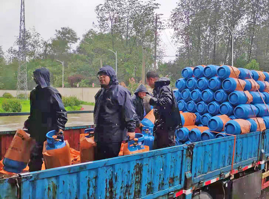 7月26日一大早,兩輛大卡車滿載著一千余只新鋼瓶,來到揚州中燃楊廟液化氣場站,全體工作人員與臺風搶時間,面對狂風、暴雨,把充裝臺場地清理出來擺放運達的一千余只新鋼瓶。同時,爭分奪秒灌裝、搶運鋼瓶保證配送,保障揚州市民穩定用氣,讓揚州中燃液化氣鋼瓶走進千家萬戶,送去更方便、更快捷的服務。