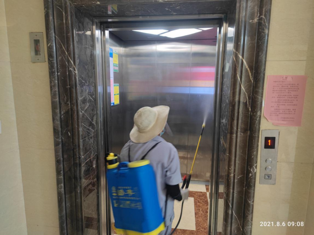 而在京杭融園小區內,保潔人員也各就各位,各司其職,認真細致的做好每日消殺工作。室內的電梯、樓層門廳、入戶大廳和室外的垃圾桶,垃圾池,是重點消殺區域。健身區域、兒童游樂區和公示欄前雖然已經幾乎沒有人,但也不能放松,還是要進行噴灑。警戒線周圍更是需要反復消殺,加密消殺。