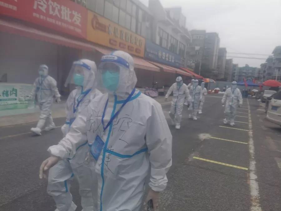 秋老虎帶來了酷熱,不消片刻,志愿者們裹著密閉的防護(hù)服汗如雨下,但志愿者們沒有一人退縮,始終堅守崗位,為疫情防控守好關(guān)卡、筑牢安全防線,用實際行動踐行初心和使命。