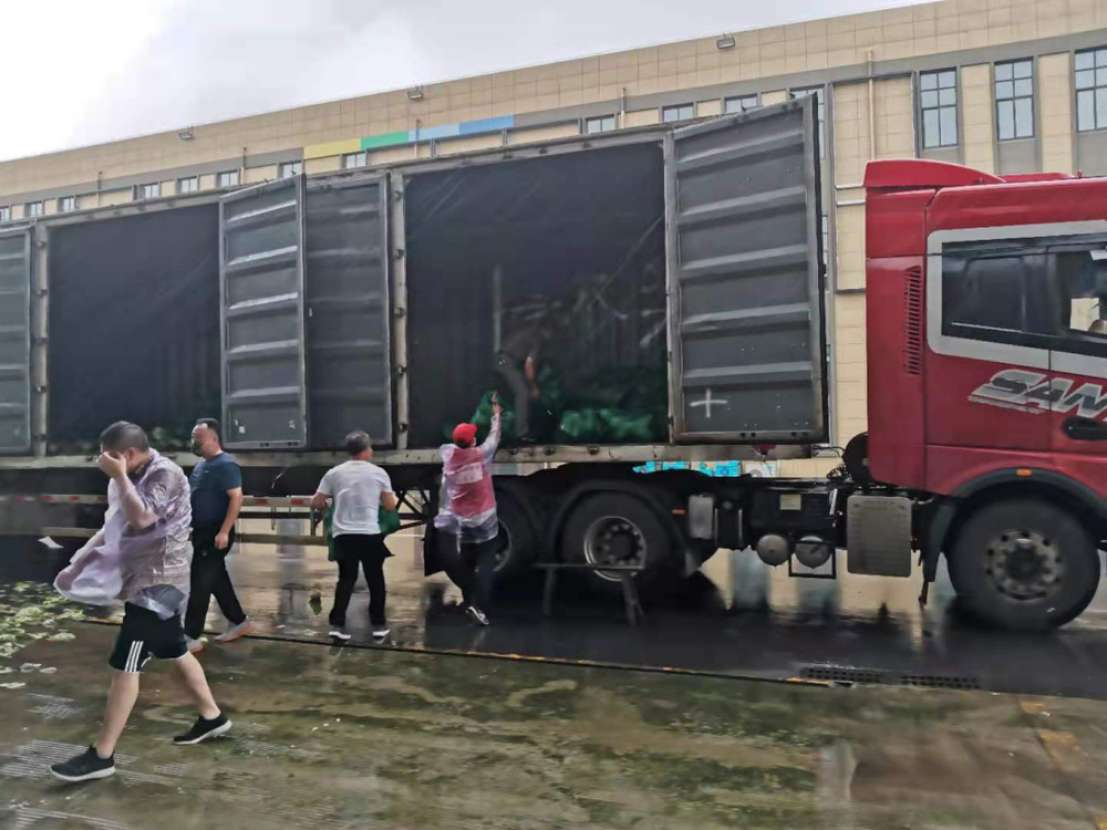 14:30,天空開始飄起雨點,大家依舊堅守在各自的崗位上,很快雨點就打濕了衣服和頭發(fā),可現(xiàn)場沒有一個人退下躲雨?!斑@車卸得差不多了,我們?nèi)ツ沁厧兔Α保摆踅瓍^(qū)轉(zhuǎn)運蔬菜的車來了,需要10個人裝車”,“我去”“我也去”,現(xiàn)場只有時不時這樣的聲音傳來。