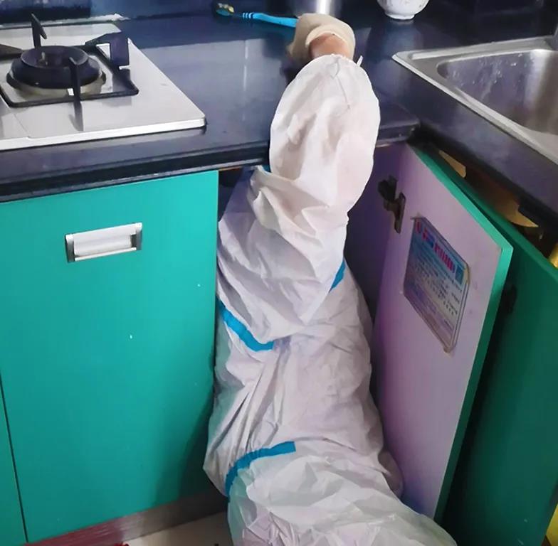 8月18日一大早,三名搶維修人員在完成核酸檢測后,驅車前往703業主所在單位與片警、物業代表匯合。上午8時許,搶修人員到達花樣年華小區,按規范穿戴防護用品,有序開展工作:拆除舊立管、更換新管道、緊固管件、氣密性檢測、復接表具、放散置換、儀器檢測、點火,立時燃氣灶迸發出蔚藍色的火焰。