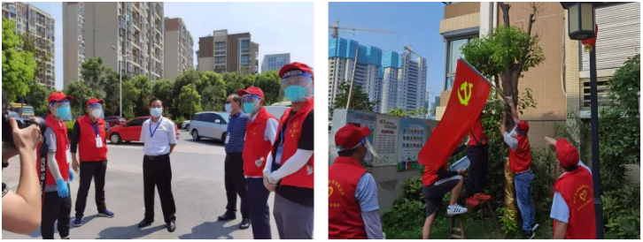 名城公司的志愿者歸編于城控集團志愿服務第7組,由集團總會計師何志軍統一帶隊。在學習志愿服務相關制度要求,以及基本個人防護知識后,于8月7日進入掛包小區:天福花園,正式開始了志愿服務工作。為了提高志愿小隊全員的凝聚力和戰斗力,建立了臨時黨支部,并由何志軍擔任支部書記,將黨旗飄揚在抗疫的第一線。