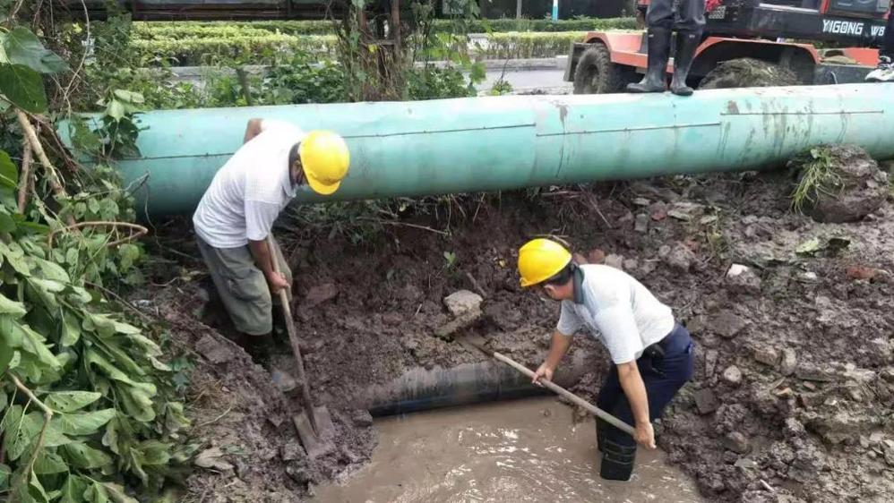 作為資深鄉(xiāng)鎮(zhèn)測漏員,杭寶慶經過半天時間的仔細巡查,發(fā)現(xiàn)是吉安路DN300管道破損造成的漏水,隨即他便著手準備開展搶修。但此處漏點位于路基下方的草叢深處,且上方有其他管線并行,土方開挖難度高、工作量大,需要專業(yè)機械進場作業(yè),而特殊時期的封閉管控政策,給人員和機械的進場帶來困難。通過不斷努力,搶修隊員聯(lián)系到高新區(qū)政府工作人員,在對方的協(xié)助和指引下,按規(guī)范辦理好搶修人員和工程機械通行證,大家終于長吁一口氣,此時已是晚上六點。