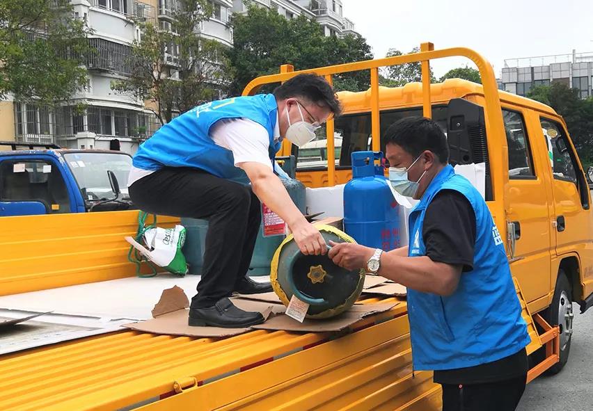 “社區不少居民的鋼瓶液化氣用完了,無法做飯,居民不能外出充氣,能不能想辦法解決這個難題……”8月22日早晨,社區網格員找到揚州中燃志愿者蔡建尋求幫助,共有12戶居民急需充裝15公斤瓶裝液化氣。蔡建隨即聯系揚州信達能源公司了解情況,得知立新路充裝點要到第二天才能提貨,到楊廟中燃液化氣場站可以隨到隨充?!耙夯瘹鈱儆谖kU品,搬運、充裝、運輸必須做到安全第一”,季紅軍叮囑出發前的蔡建和嵇兵。兩人用中燃公司備用卡車,在社區三個點收齊12只空鋼瓶后,用尼龍繩分別串聯緊固,保持勻速驅車前往楊廟充裝站點。中午12時許,運送車輛在楊廟充裝完畢后,安全返回文昌花園。