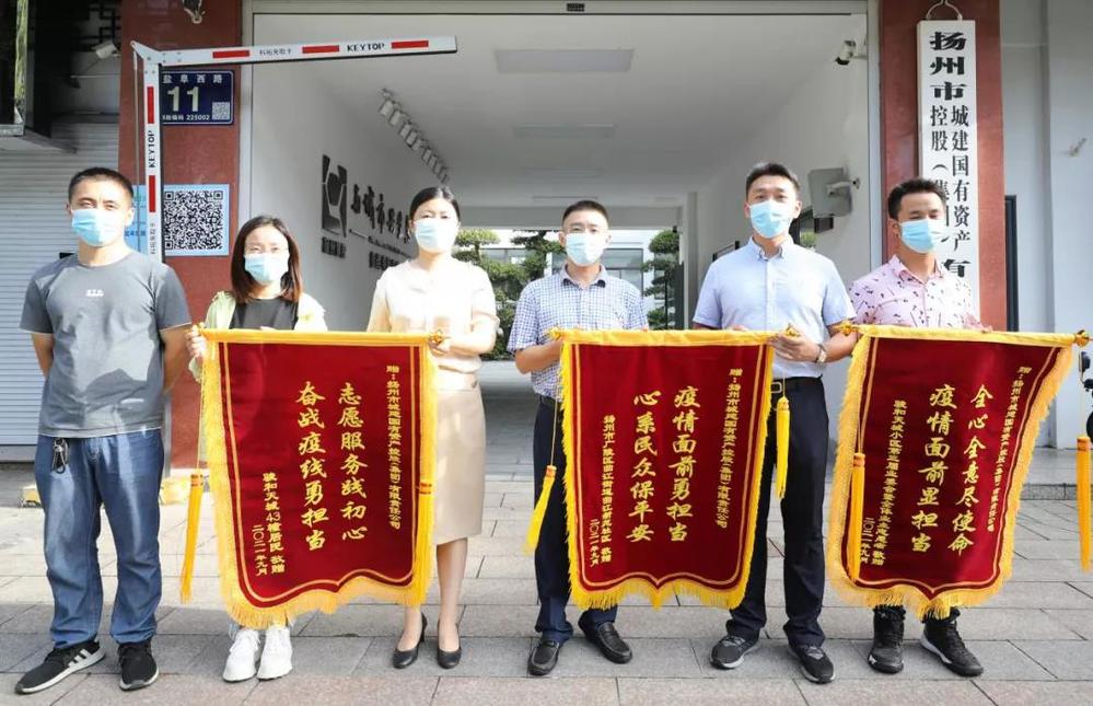 9月13日,廣陵區曲江街道人武部部長孫君,曲江新苑社區黨總支書記、主任韋娜一行,帶著錦旗專程來到城控集團,代表社區和轄區內全體居民,感謝城控集團在疫情期間對社區疫情防控工作的支持和幫助,并對城控集團抗疫志愿者們兢兢業業、無私奉獻的工作態度連連點贊。