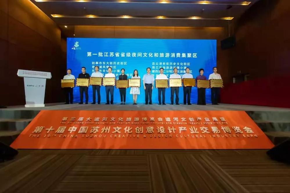 9月23日上午,江蘇省首批夜間文化和旅游消費集聚區(qū)授牌儀式在蘇州舉行,省文化和旅游廳黨組書記、廳長楊志純出席并授牌,城控集團東關歷史文化旅游區(qū)榮獲殊榮,城控集團黨委委員、名城公司總經(jīng)理戴興春作為代表上臺領取獎牌。