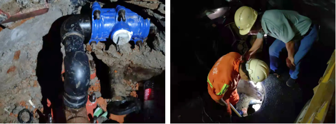 20:30,根據現場環境制定搶修方案后,搶修人員以最快的速度完成管道搶修為目標,克服時間緊、作業空間狹小等不利因素,正式開始搶修。