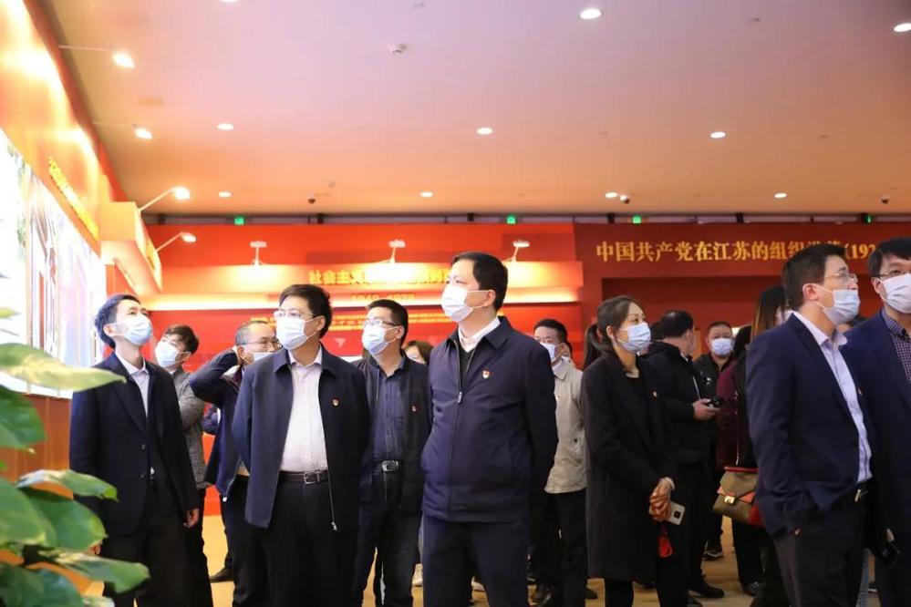 展館里,大家循著中國共產(chǎn)黨在江蘇波瀾壯闊的奮斗歷程這一條主線,仔細參觀了“建立黨的組織,為新民主主義革命勝利作出重要貢獻”“在探索中前進,進行社會主義革命和建設(shè)”“實行改革開放,推進中國特色社會主義江蘇實踐”“決勝全面小康,交出‘強富美高’新江蘇建設(shè)的時代答卷”4個部分。一幅幅泛黃照片、一段段珍貴視頻和一個個沉浸式場景體驗,為全體黨員干部上了一堂入眼入耳、入腦入心的實景黨課,大家在看、聽、論、思中深刻感悟中國共產(chǎn)黨在江蘇砥礪奮斗的初心使命。