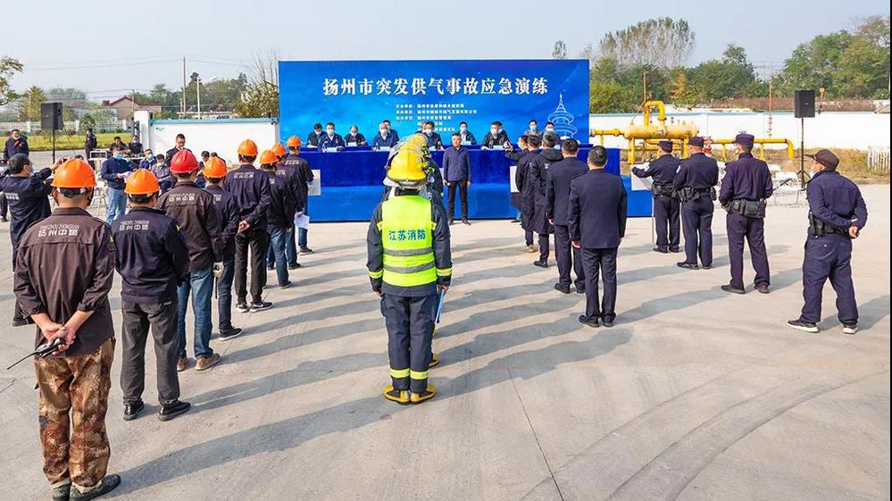 為檢驗應急預案的可操作性、可執行性,進一步提升公司處置突發供氣事故能力,11月3日,市住建局在揚州中燃LNG儲備站內開展突發供氣事故應急演練。市住建局四級調研員駱俊東擔任演練總指揮,市應急管理局、廣陵區、邗江區、經濟開發區、蜀崗—瘦西湖景區、生態科技新城有關負責人,市燃管中心負責人全程觀摩。公司主要負責人、用氣企業代表參加活動。
