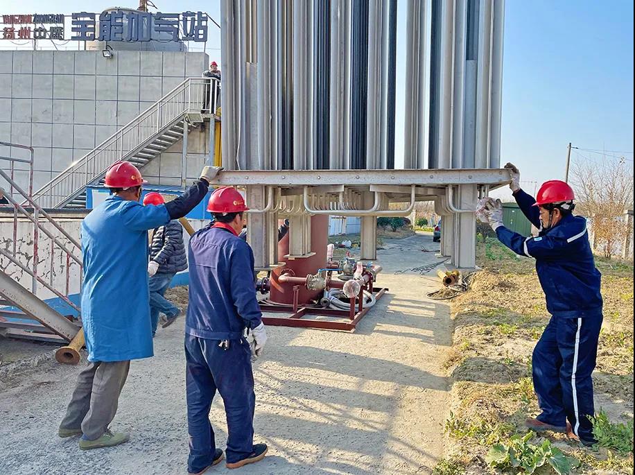 公司超前謀劃做好在極端天氣下氣化保供準備工作。12月13日,在寶能加氣站又安裝一組氣化裝置,該套裝置每小時最大氣化量可達6500立方,在遇極端天氣管網壓力不足的情況,可以向管網持續(xù)補充天然氣,助力市區(qū)居民冬季生活用氣。