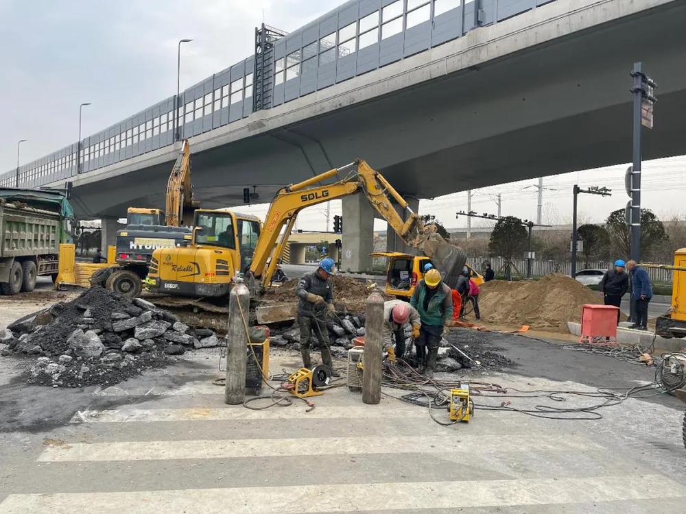長江水務潤元公司緊急召開搶修方案討論會,做好搶修施工準備工作,并協調供水調度中心對西湖增壓站實施降壓供水,晚上7點,管道搶修工作全面開始。搶修現場破碎機和發電機轟鳴,熱火朝天,新年伴隨著遠處傳來的鞭炮聲如期而至。在辭舊迎新的跨年之夜,搶修施工人員冒著凜冽的寒風,奮戰在搶修一線,地下管線密集交織、道路結構層堅硬、漏水不斷滲入工作坑內,給搶修帶來了很大困難,大家各司其職,克難求進,加快工作進程。