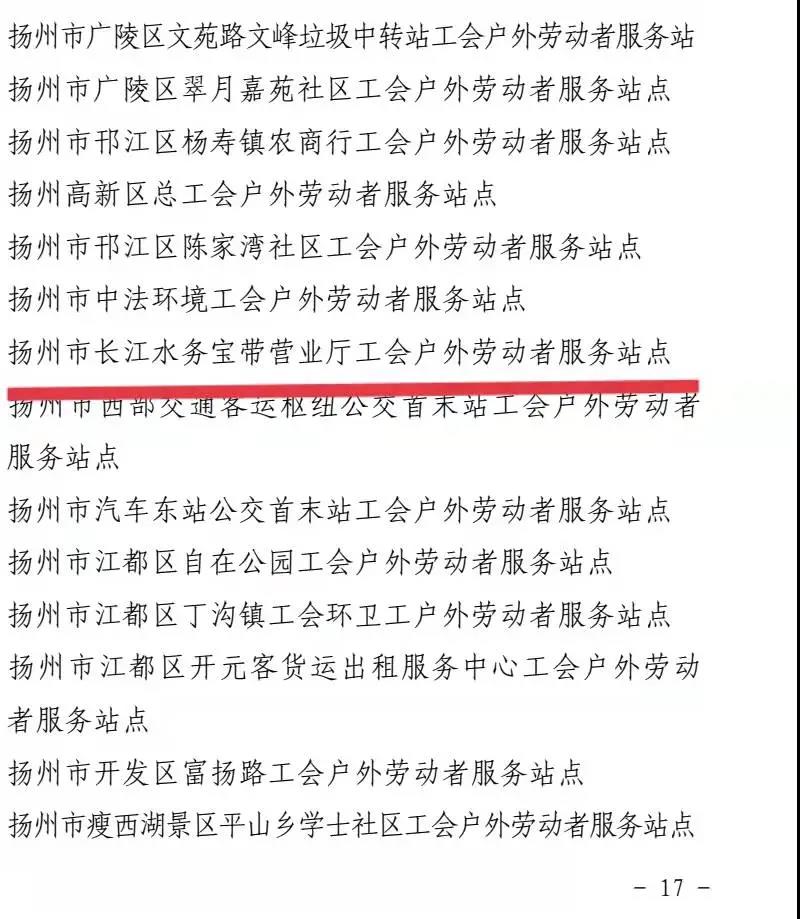 近日,江蘇省總工會(huì)下發(fā)《通知》,推樹2021年度全省“最美工會(huì)戶外勞動(dòng)者服務(wù)站點(diǎn)”,長(zhǎng)江水務(wù)公司寶帶營(yíng)業(yè)廳工會(huì)戶外勞動(dòng)者服務(wù)站點(diǎn)榮登榜單。