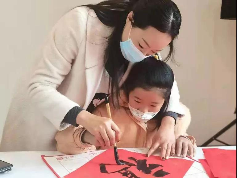 現場的居民聽罷躍躍欲試,工作人員則手把手的教孩子們體會毛筆的書寫方法,很快一個個福字就躍然紙上,大紅的宣紙應襯著歡樂的笑臉,孩子們興奮的舉起親手書寫的福字,互相展示炫耀,家長們則樂呵呵的忙著拍照,現場年味濃郁、氣氛融洽。