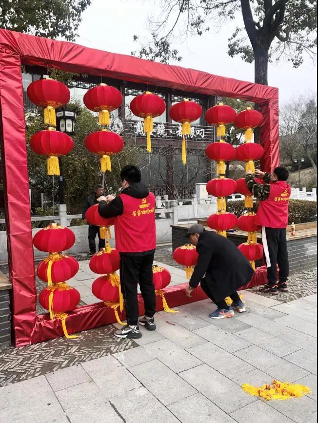 “三九四九冰上走”,正值四九天氣,水滴成冰,但這絲毫阻擋不了志愿服務小分隊張燈結彩的熱情,他們分工明確,配合默契,干得熱火朝天,不出一會兒就為街區換上了火紅的新裝。