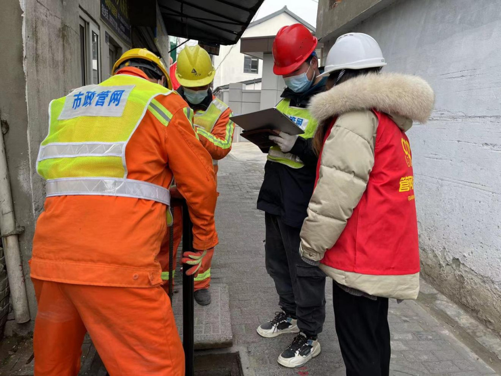 小實(shí)惠巷內(nèi),測(cè)繪班組正在畫圖,標(biāo)井號(hào),方便后續(xù)班組的進(jìn)場(chǎng)排查。