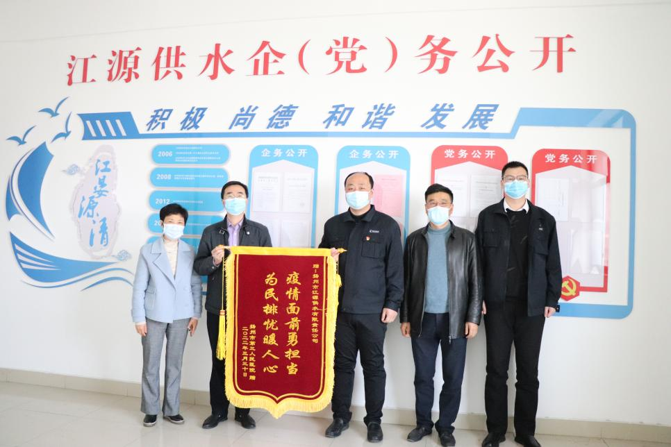 在常態(tài)化疫情防控期間,為保障各重點(diǎn)場(chǎng)所和單位的用水無(wú)憂(yōu),長(zhǎng)江水務(wù)公司指派專(zhuān)人全天候值守,堅(jiān)持主動(dòng)服務(wù)和靠前服務(wù),隨時(shí)掌握供水服務(wù)區(qū)域內(nèi)的各重點(diǎn)場(chǎng)所和單位的用水情況和服務(wù)訴求,高質(zhì)量高效率地完成疫情防控隔離點(diǎn)的通水配套工作及定點(diǎn)收治醫(yī)院等重點(diǎn)單位的用水保障工作,服務(wù)人員定期定點(diǎn)對(duì)供水管網(wǎng)進(jìn)行巡線(xiàn)排查,監(jiān)測(cè)記錄水質(zhì)、水壓數(shù)據(jù),全力保障水質(zhì)優(yōu)、水壓足,在揚(yáng)州市疫情防控工作中做到守土有責(zé)、守土盡責(zé),踐行“水務(wù)擔(dān)當(dāng)”。