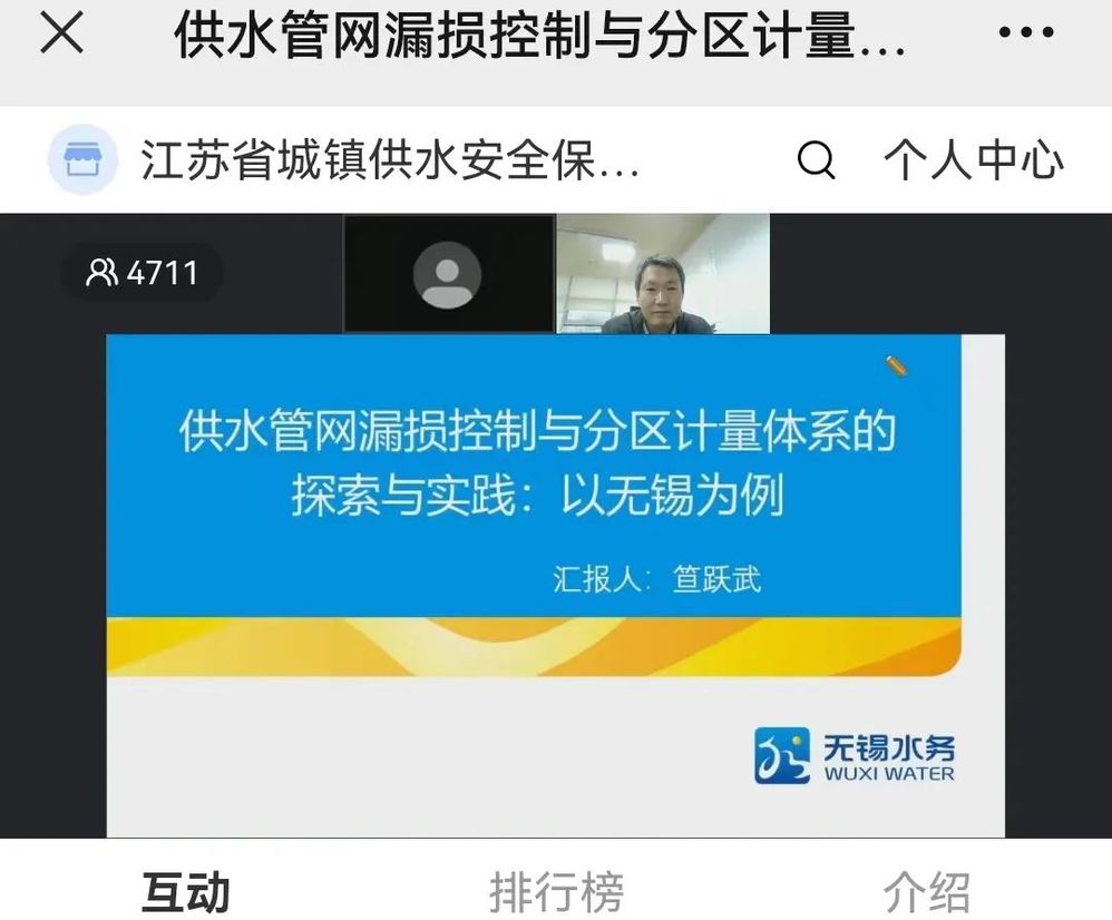 此次專題報告由江蘇省城鎮供水安全保障中心邀請無錫市水務集團有限公司技術總監、副總工程師笪躍武講授《供水管網漏損控制與分區計量體系的探索與實踐:以無錫市為例》,從漏損控制的背景、現狀分析,分區計量的規劃、設計、實施、難點等幾個方面給大家做了詳細的講解,有助于指導科學合理開展各項漏損控制工作。