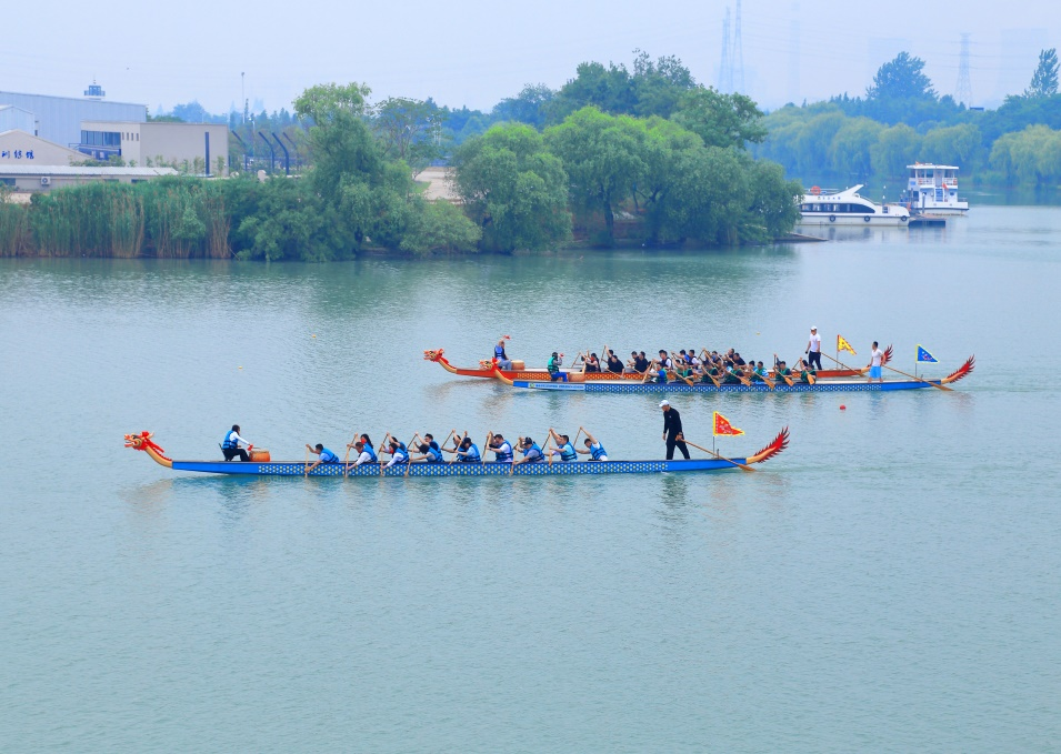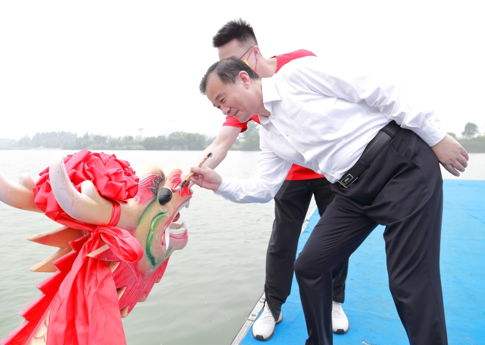 龍舟賽活動現(xiàn)場,葉善祥為每艘賽船龍頭進行了點睛后,宣布龍舟賽正式開賽。哨聲響、鼓點起,3支龍舟隊在水面同時競發(fā),選手們各司其職,精神抖擻,整齊劃一的揮動手中的船槳破浪前行。親友團在岸邊搖旗吶喊、歡呼鼓掌,湖面浪花飛濺,十分壯觀。經過訓練賽、250米競速賽,最終三只龍舟都齊心協(xié)力抵達終點,角逐出了一二三名,集團領導為獲獎的各支隊伍頒獎。