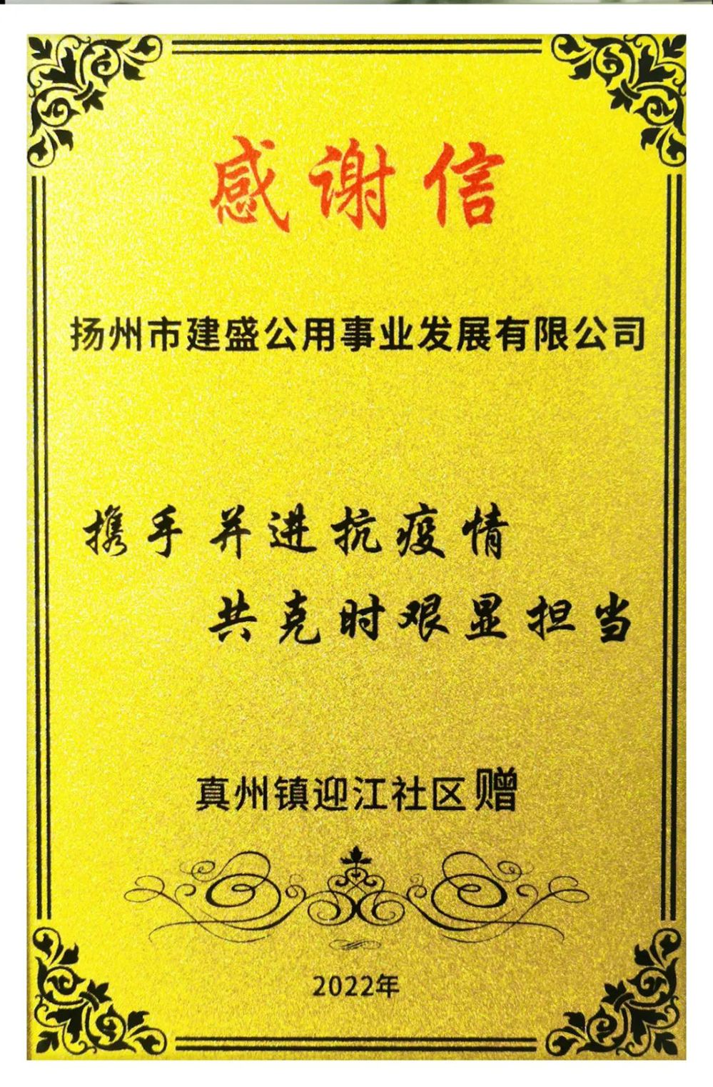 5月31日上午,迎江社區(qū)負責(zé)人將一封感謝信送至建盛公司,以表達對公司鼎力相助社區(qū)疫情防控工作的感激之情。