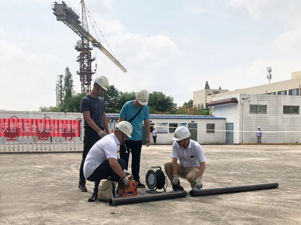此次演練模擬工作人員在日常巡檢中,發(fā)現(xiàn)PE100燃?xì)夤艿罁p壞,導(dǎo)致天然氣泄漏展開應(yīng)急處理。發(fā)現(xiàn)險(xiǎn)情后,公司立即啟動(dòng)應(yīng)急預(yù)案,迅速安排應(yīng)急搶險(xiǎn)人員進(jìn)行現(xiàn)場處置,關(guān)閉氣源及加壓站調(diào)壓設(shè)施、設(shè)置警戒線、進(jìn)行現(xiàn)場環(huán)境濃度檢測,最終排除險(xiǎn)情恢復(fù)供氣。