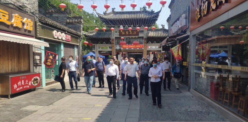 6月16日上午,南京市六合區副區長徐仁平帶隊到東關街實地考察古城保護與利用工作。城控集團黨委委員、名城公司黨總支書記、總經理戴興春陪同調研,六合區政府、名城公司、古城保護公司相關人員參加活動。