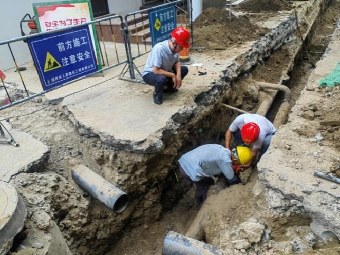 今年6月是全國第21個、江蘇省第29個安全生產月,根據揚州市安委會以及城控集團安全生產月活動的統一要求和部署,為進一步提高公司員工的安全意識和應對突發事件的應急救援處置能力,上善公司在市人大雨污分流工程工地現場進行管道搶修應急演練。