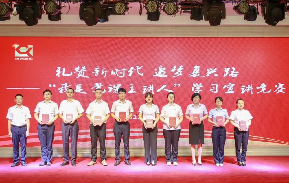 為進一步推動習近平新時代中國特色社會主義思想深入基層、深入人心,更好激勵集團廣大干部職工在新時代新征程上奮發有為、建功立業,為黨的二十大勝利召開營造濃厚氛圍,7月7日下午,集團黨委舉辦了“禮贊新時代 追夢復興路——我是黨課主講人”學習宣講競賽。市委黨建辦副主任孫明,市國資委黨委副書記華占軍,揚州市工業職業技術學院黨委委員、宣傳部部長徐華,市委黨校培訓處處長丁健蒞臨指導并擔任評委,集團黨委書記、董事長葉善祥,黨委副書記徐飛出席活動,集團機關黨支部書記、下屬單位黨組織主要負責人、分管負責人、基層黨務工作者近80人參加活動。