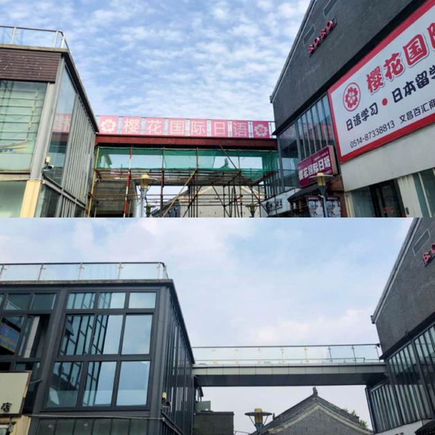 文昌百匯玻璃幕墻改造前后對比。