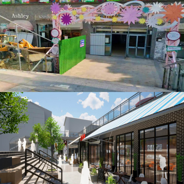 通運商貿城外墻改造前后對比。