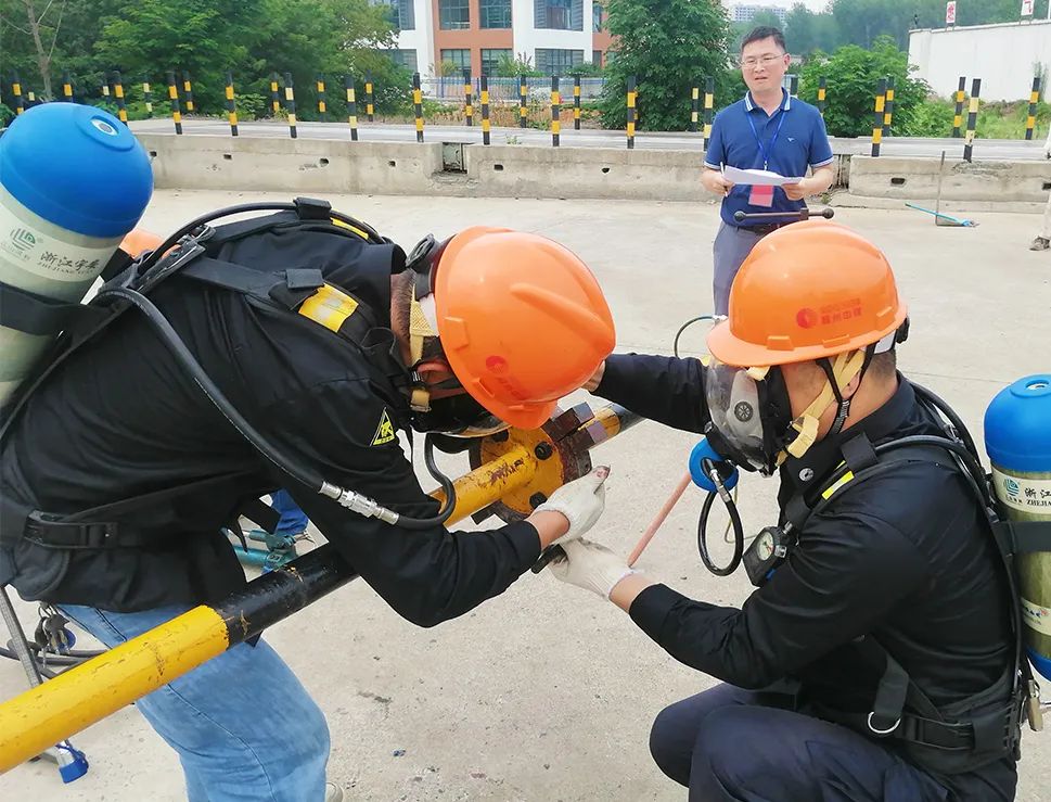 為提高燃氣企業應急搶險隊伍的快速反應能力和應急搶修實戰能力,遵循“以人為本、預防為主、統一領導、協同作戰”的原則,7月5日下午,由市燃管中心、市燃氣行業協會主辦,揚州中燃公司承辦的“液化石油氣儲罐根部法蘭泄漏帶壓堵漏技術比武”在楊廟液化氣場站舉行。市燃管中心、邗江區燃氣管理部門、揚州中燃公司有關負責人全程觀摩比賽。
