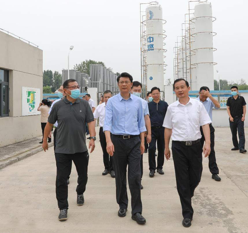 在楊廟天然氣儲備站,王進健聽取了門站工藝流程、LNG儲氣規模和運行狀況等情況匯報。詳細了解了入夏以來天然氣運行保障、安全生產等情況,囑咐大家注意防暑、保重身體,以更飽滿的精神、更高效的行動保障安全優質供氣。