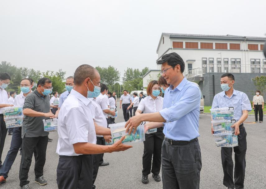 近期,我市持續晴熱高溫。7月16日下午,市長王進健帶隊深入第四水廠、楊廟門站檢查指導高溫下的安全生產和民生保供工作,看望慰問高溫酷暑中堅守一線的工作人員,感謝他們為城市發展和保障民生作出的貢獻。市委常委、常務副市長陳鍇竑,市委常委、秘書長、副市長趙慶紅,市政府秘書長徐志剛,市政府副秘書長、市自規局局長林寶榮,城控集團黨委書記、董事長葉善祥,副董事長戚磊參加活動。