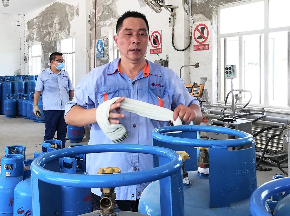 據悉,從早上7:30到下午5:30,一天的液化氣灌裝量達13噸,折算成14.5公斤鋼瓶,灌裝近900瓶,有力地保證了市區居民液化氣供應。