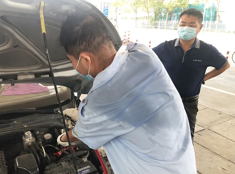 揚(yáng)州中燃公司8座加氣站擔(dān)負(fù)著揚(yáng)州市區(qū)公交車、出租車、網(wǎng)約車等車輛的加氣職責(zé)。連日高溫,車輛開啟空調(diào)后用氣量加大,加氣量由之前的每天5萬立方增至6萬立方。為此,車用氣一方面確保優(yōu)質(zhì)服務(wù),保證車輛隨到隨加,并為駕駛員免費(fèi)提供熱水、微波爐熱飯、大廳空調(diào)休息等服務(wù);另一方面確保安全生產(chǎn),為員工發(fā)放防暑降溫物品,各場站安排員工輪換加氣??瓦\(yùn)東站加氣站沒有加氣大棚,更是高溫難耐,加氣工身上的衣服濕了干、干了濕,衣服上畫滿了鹽漬“地圖”,他們用汗水詮釋責(zé)任,用責(zé)任彰顯擔(dān)當(dāng)。打開后備箱檢查隱患、插槍加氣等操作流程一絲不茍,以實(shí)際行動落實(shí)燃?xì)獍踩鞍偃招袆印薄?/p>