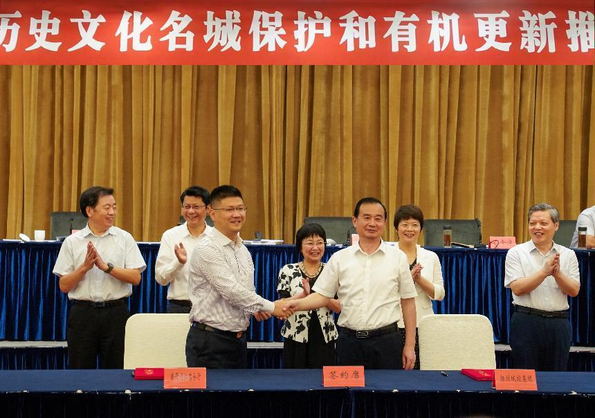 7月19日上午,市委、市政府召開揚州歷史文化名城保護和有機更新推進大會。市委書記張寶娟、省住房和城鄉(xiāng)建設廳廳長周嵐出席會議并講話,市長王進健主持會議,市人大常委會主任孔令俊、國開行江蘇省分行副行長劉宗岐參加會議。會上,城控集團與國家開發(fā)銀行江蘇省分行簽署戰(zhàn)略合作協(xié)議,城控集團董事長葉善祥、國開行江蘇省分行二處處長姜方放分別代表雙方簽約。