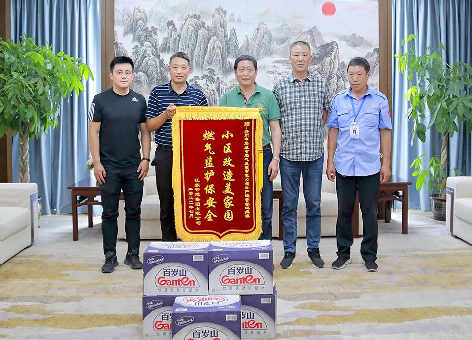 近日,江蘇邗建集團老小區改造項目部負責人王鋒來到揚州中燃公司,送上了一面“小區改造美家園 燃氣監護保安全”錦旗和防暑降溫慰問品,以表達對揚州中燃公司精心監護工地、保障燃氣安全的感謝之情。