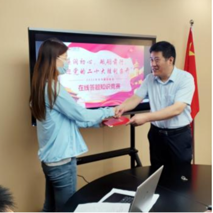 會議最后組織開展了“廉潤初心,砥礪前行,喜迎黨的二十大勝利召開”暨2022年黨風(fēng)廉政建設(shè)在線答題知識競賽活動,活動自7月8日起,本著“學(xué)、練、賽”相結(jié)合的原則,在“我的揚(yáng)州APP”設(shè)置了每日答題練習(xí)。正式比賽開始后,各位參賽選手立刻進(jìn)入狀態(tài),集中精神、認(rèn)真答題。經(jīng)過激烈的角逐,支部書記為獲獎選手頒發(fā)榮譽(yù)證書。